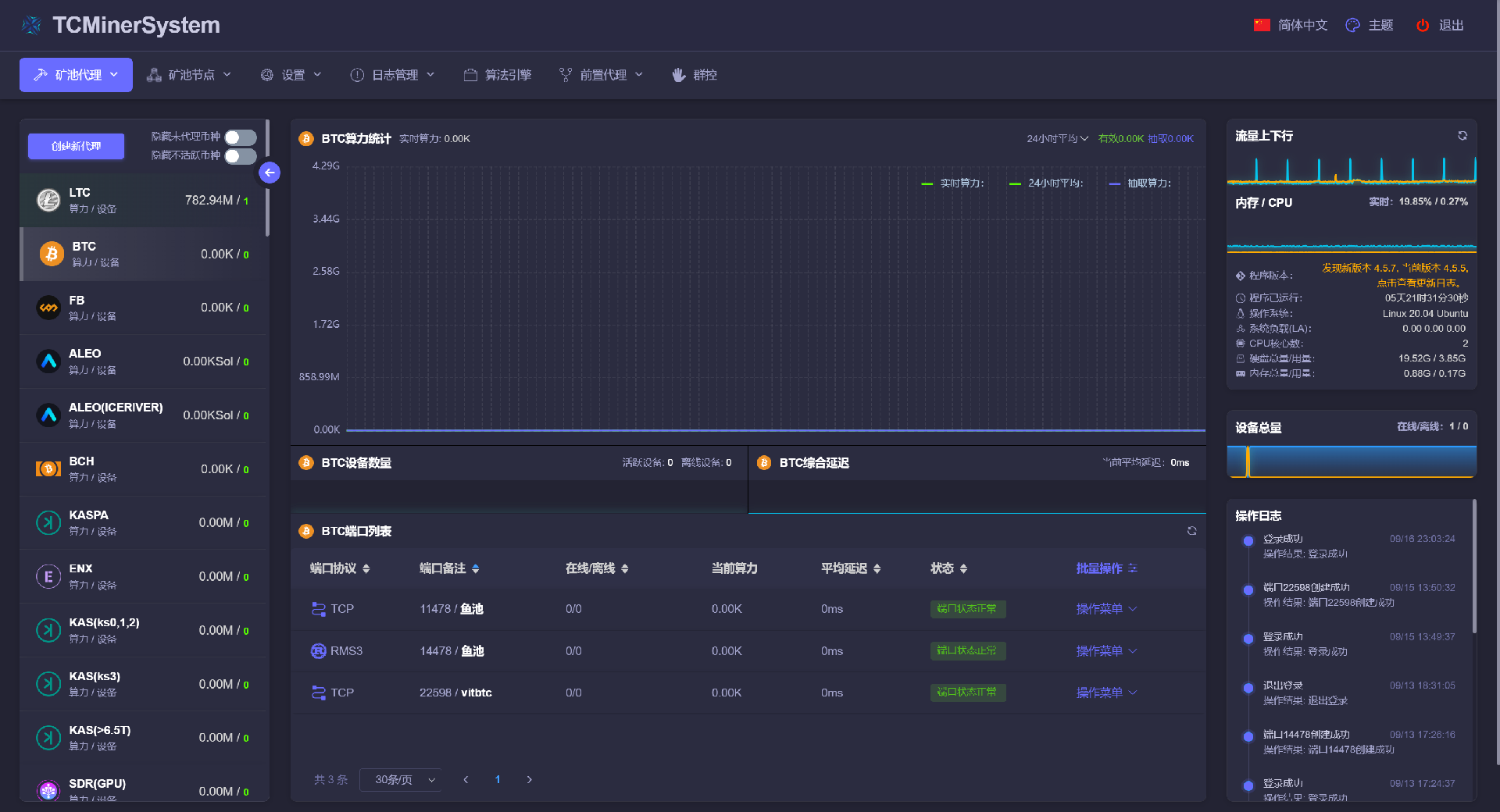 通过加密代理服务器连接目标矿池,降低网络延迟并提升稳定性,兼容所有矿机接入,满足大规模挖矿需求。